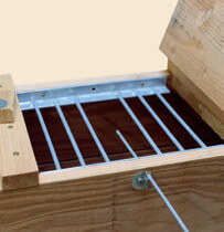 Ein Eisenstab des Schutzgitters ist zur Säuberung des Auslösebrettes und zur Beköderung herausnehmbar.